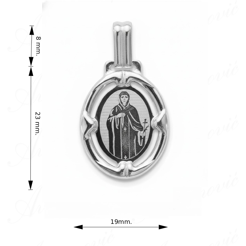 Privezak od srebra finoće 925 sa likom Svete Petke, poštovane kao zaštitnice žena, siromašnih i bolesnih. Ovaj privezak simbolizuje snagu, isceljenje i veru. Izrađen je od rodiniranog srebra za postojan blistav sjaj i otpornost na tamnjenje. Idealan je kao lični talisman ili poklon osobi kojoj želite da pružite duhovnu podršku i zaštitu.
