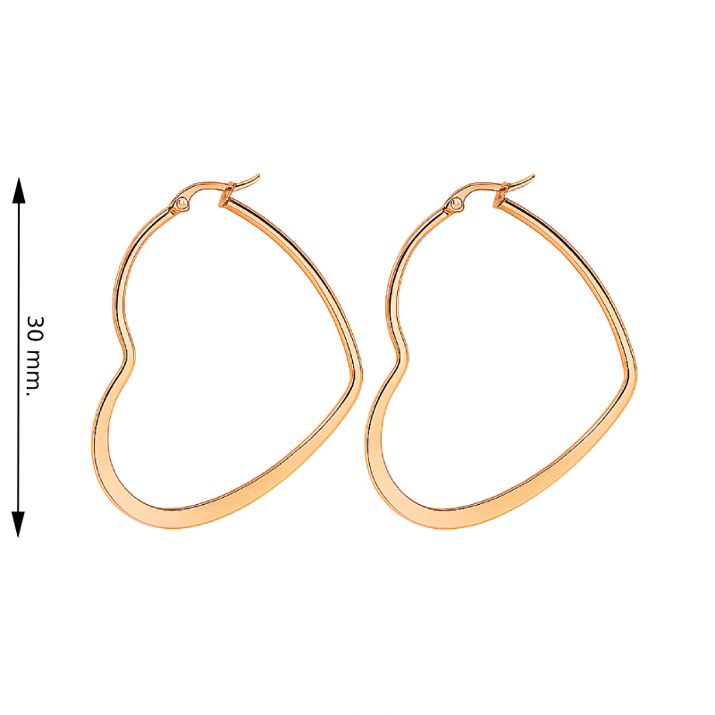 Par titanijumskih minđuša u obliku srca, prečnika 30 mm, u elegantnoj roze gold boji sa visoko poliranim završnim sjajem. Izrađene od hipoalergenog titanijuma otpornog na koroziju, nude dugotrajnost i udobnost. Njihov romantičan ton i moderan dizajn čine ih savršenim izborom za svaku priliku.