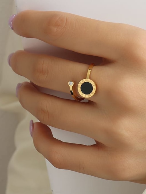 Elegantni čelični prsten zlatne boje sa modernim kružnim dizajnom. Crni oniks u sredini okružen je rimskim brojevima, dok mali cirkon dodaje dozu luksuza i sjaja. Savršen spoj klasičnog i savremenog stila, idealan za svakodnevno nošenje ili poseban poklon. Održava boju i sjaj, otporan na vlagu i habanje.