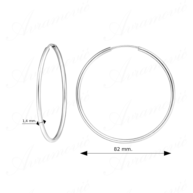 Elegantne srebrne alke, klasičnog okruglog dizajna. Prečnik od 82 mm i debljina od samo 1,4 mm čine ih upečatljivim, a istovremeno laganim i udobnim za nošenje. Izrađene od visoko poliranog srebra za dugotrajan sjaj. Savršen aksesoar za svaki dan i svaku priliku, dodajući diskretnu glamuroznost Vašem stilu.