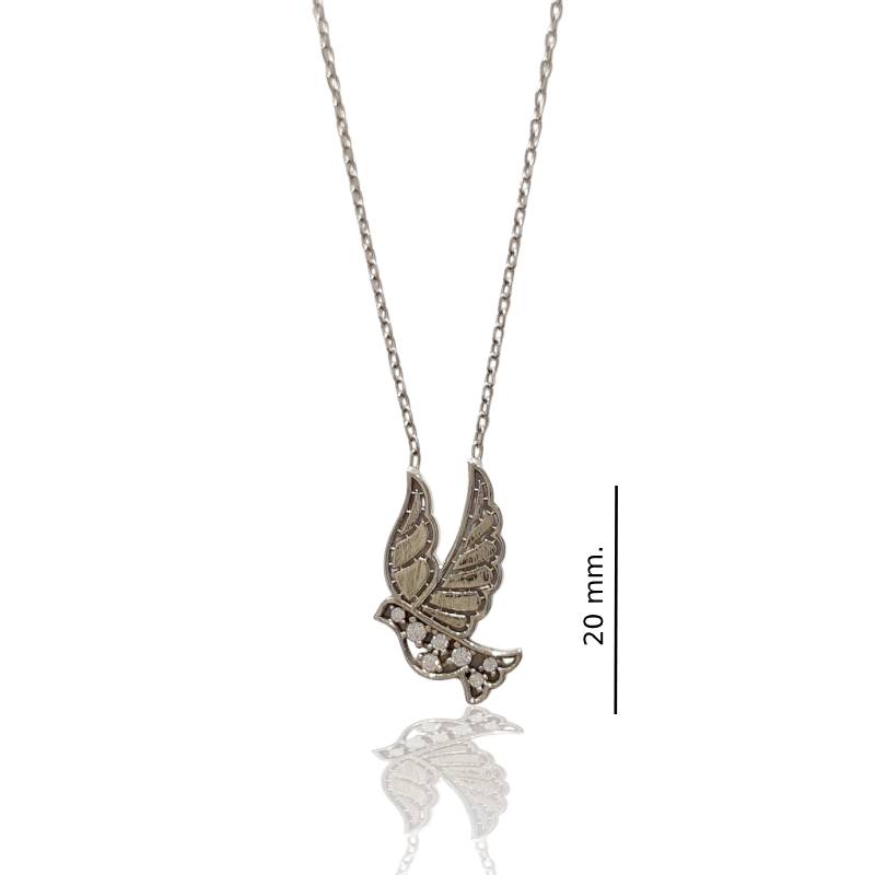 Ova elegantna srebrna ogrlica sa priveskom u obliku golubice savršen je poklon za svaku priliku. Izrađena je od rodiniranog 925 srebra, što garantuje dugotrajan sjaj i otpornost na tamnjenje. Privezak, u obliku golubice, ima krila ukrašena blistavim cirkonima, dok je telo u poliranom srebru, što mu daje jedinstven izgled. Golubica simbolizuje mir, ljubav i nadu, čineći ovu ogrlicu predivnim i emotivnim komadom nakita.
