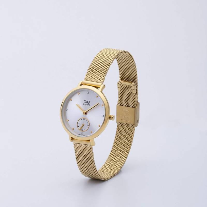 Q&Q QA97J001Y je elegantan ženski analogni sat sa kućištem od metala u zlatnoj boji i milanskom čeličnom narukvicom. Brojčanik je srebrnkast sa sunray efektom i malim podbrojčanikom za sekunde. Kvarcni Miyota mehanizam, mineralno staklo i vodootpornost 3 ATM čine je praktičnom i stilski sofisticiranom.